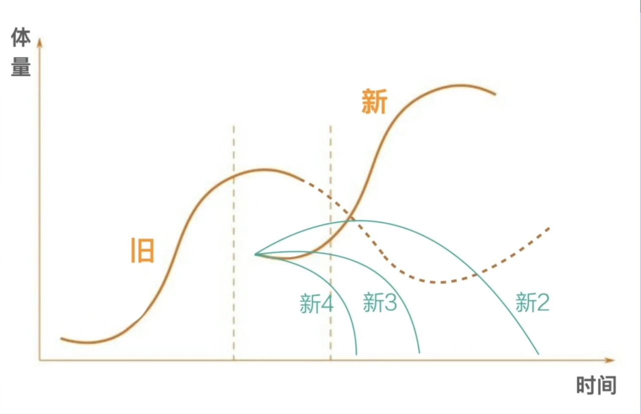 - 新事物开始时比旧事物差很多,之后会酝酿长大,超越旧事物。更多的新事物来不及长大就死了。