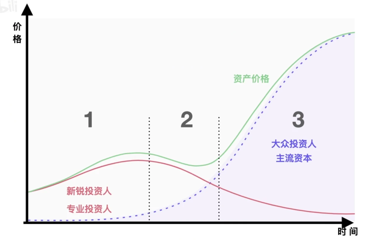 - 科技开始落地,主流进入游戏,概念再次升仙,价格一飞冲天,但最早进场的人早已所剩无几。