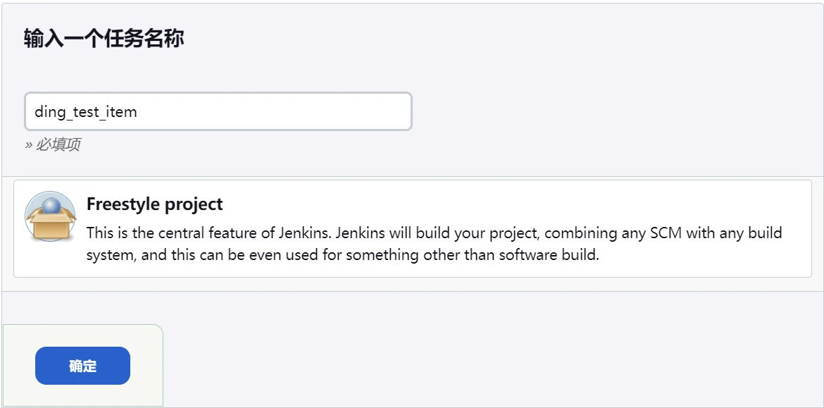 未安装其他插件时,任务类型只能选“Freestyle project”;安装某些插件后,有其他选项。