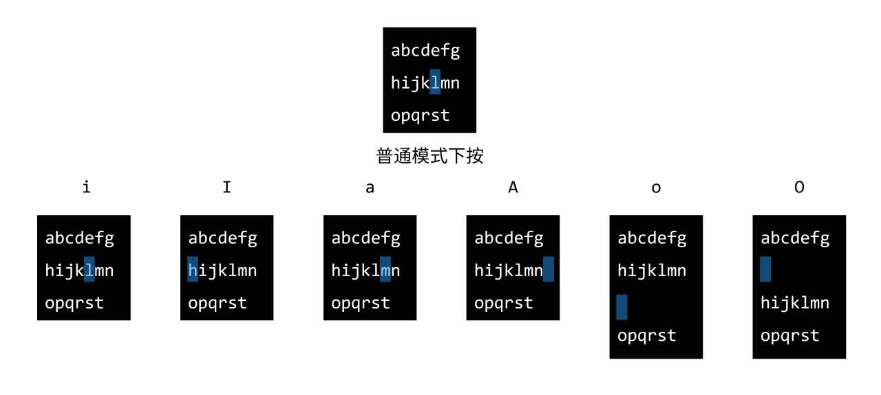 进入插入模式时,光标位置