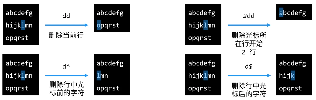 普通模式以行删除字符