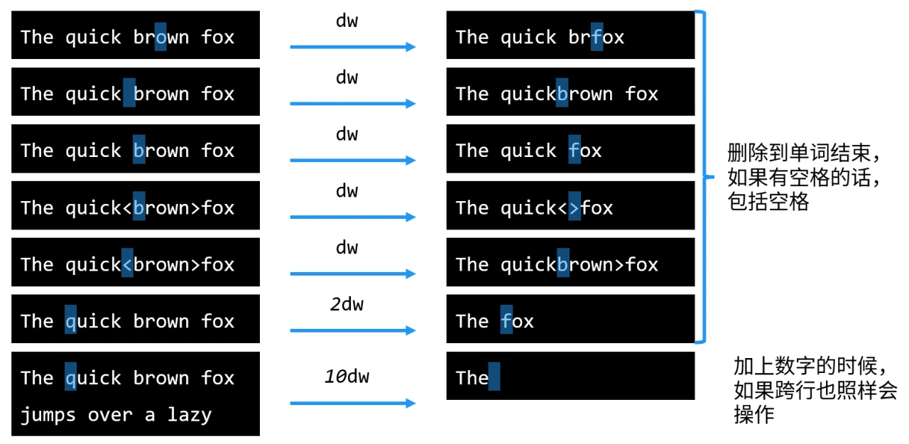 普通模式以单词删除字符