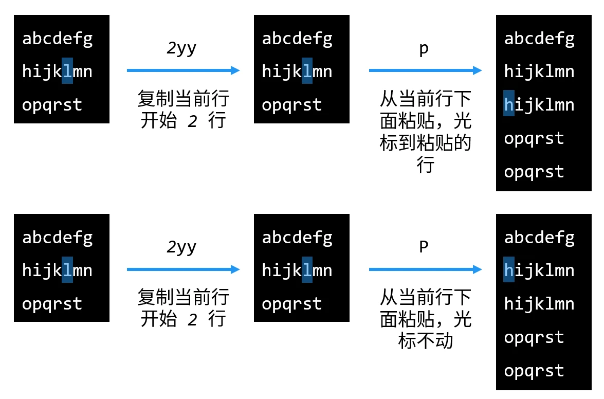 执行 d 操作时,实际上是剪切,也可以把内容粘贴到其他地方。