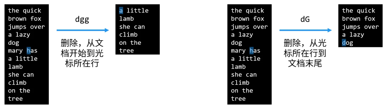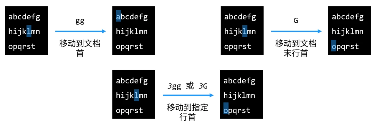 Xgg:执行某操作X到文档开始XG:执行某操作X到文档结束行Xngg、XnG:上述操作到给定的行