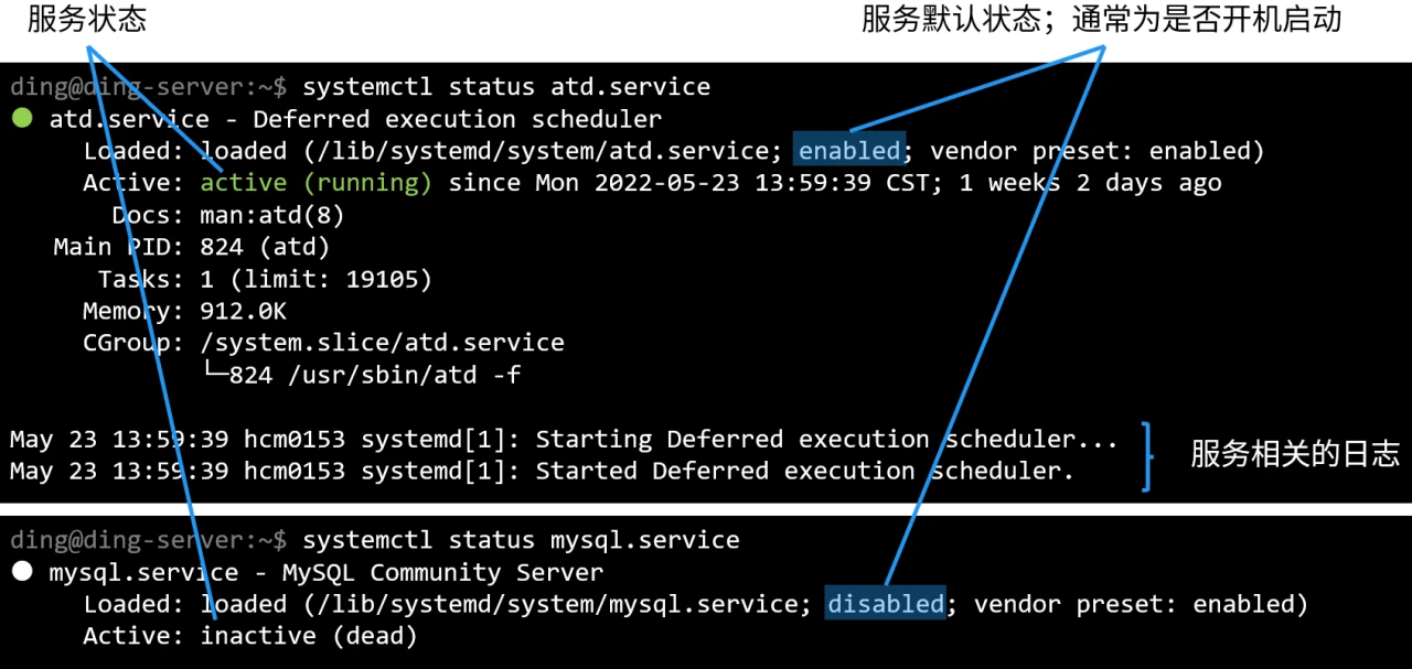 systemctl status 的例子