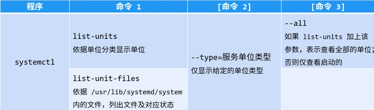 守护进程的执行脚本通称为服务单位(unit),每种服务单位根据功能区分时,分为不同类型。