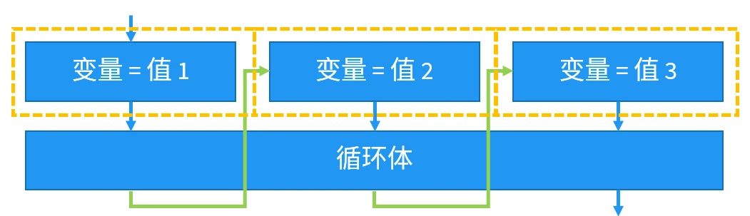一般会在循环前赋值,条件和循环后操作都会操作值。