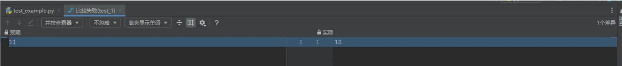点击以查看差异时,左边的为预期,右边的为实际: