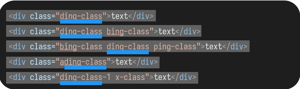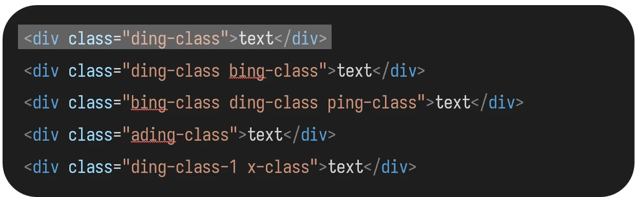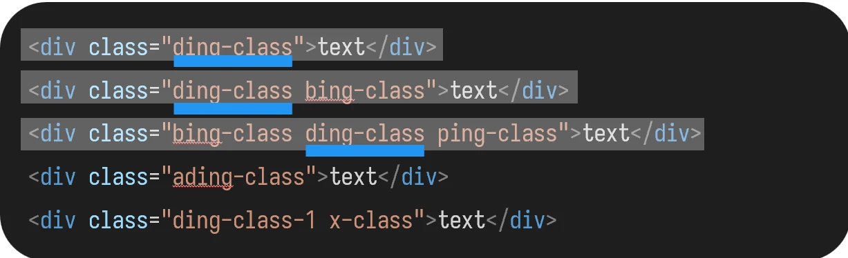 仍然错误,会选取不为 ding-class,但文本中有该字符串的 class: